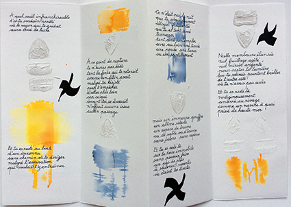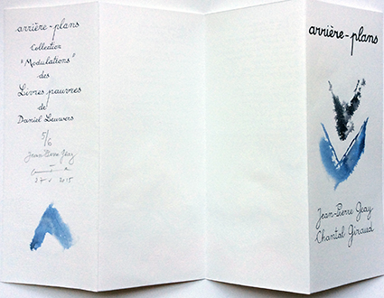 retourLa collection de « livres pauvres » hors commerce, de Daniel Leuwers s’enrichit d’une collection particulière « Modulations » constituée uniquement de sept ouvrages, tous du même auteur Jean-Pierre Geay, et tous enluminés de la main du peintre Chantal Giraud |