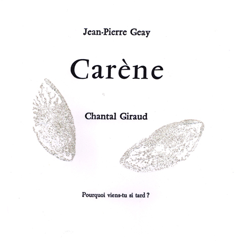poème inédit de Jean-Pierre GEAY peintures originales de Chantal GIRAUD dans chaque exemplaire imprimé par Philippe MOREAU, maître imprimeur 30 exemplaires de 24 pages, format 17 x 17 cm sur velin BFK de Rive 250 g
