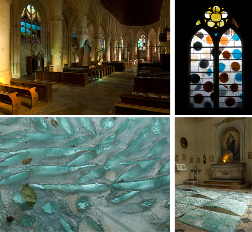 Vitraux de David Tremlett, Eglise St Pierre St Paul de Villenauxe, 2005 Exposition d'art contemporain, verres de Chantal Giraud, Château de la Motte-Tilly, 2010